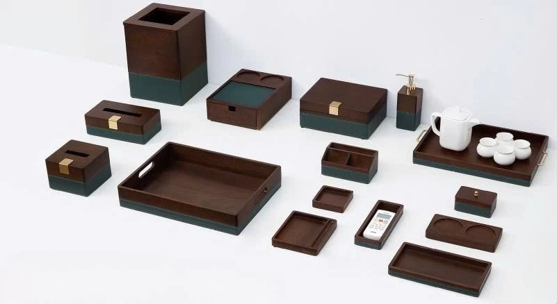 Công năng: Đa dạng các sản phẩm trong bộ: khay đựng đồ, hộp khăn giấy, thùng rác mini,...