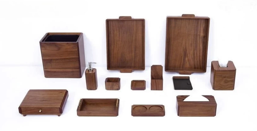 Công năng: Đa dạng các sản phẩm trong bộ: khay đựng đồ, hộp khăn giấy, thùng rác mini,...